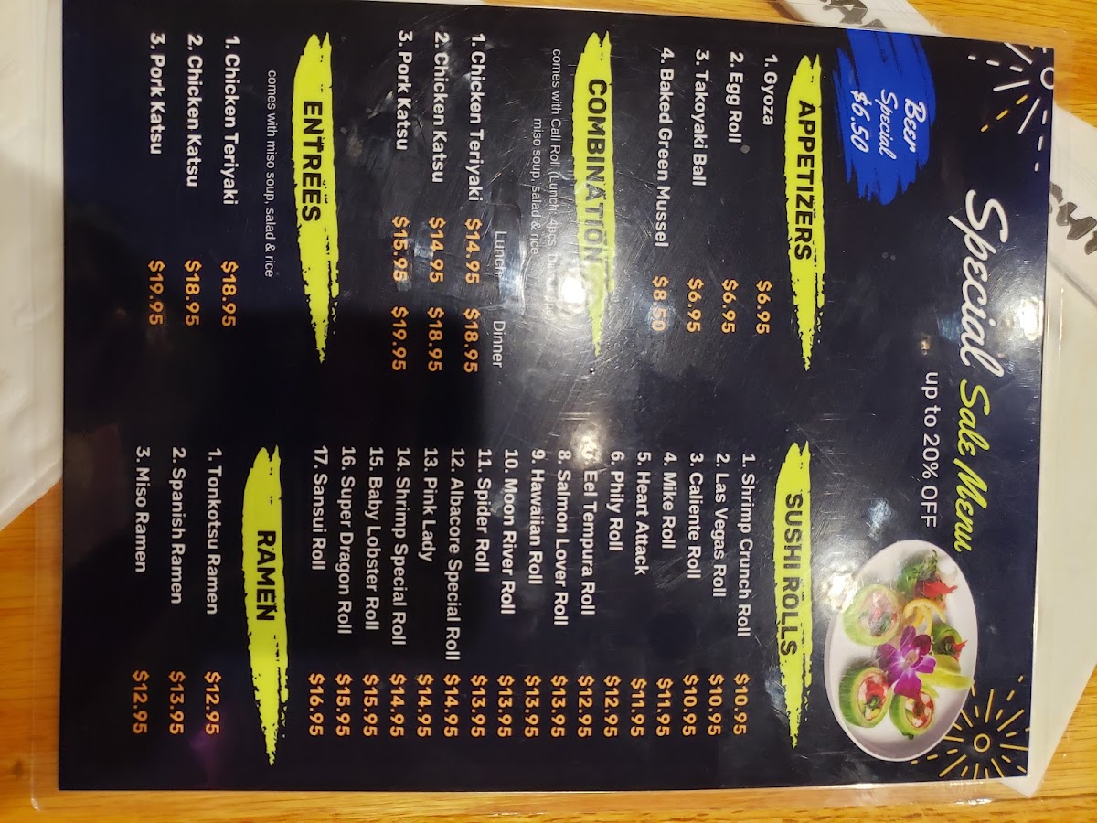Tuna sushi, albacore sushi, white escolar sushi, Cajun tuna sushi, spicy tuna roll.
